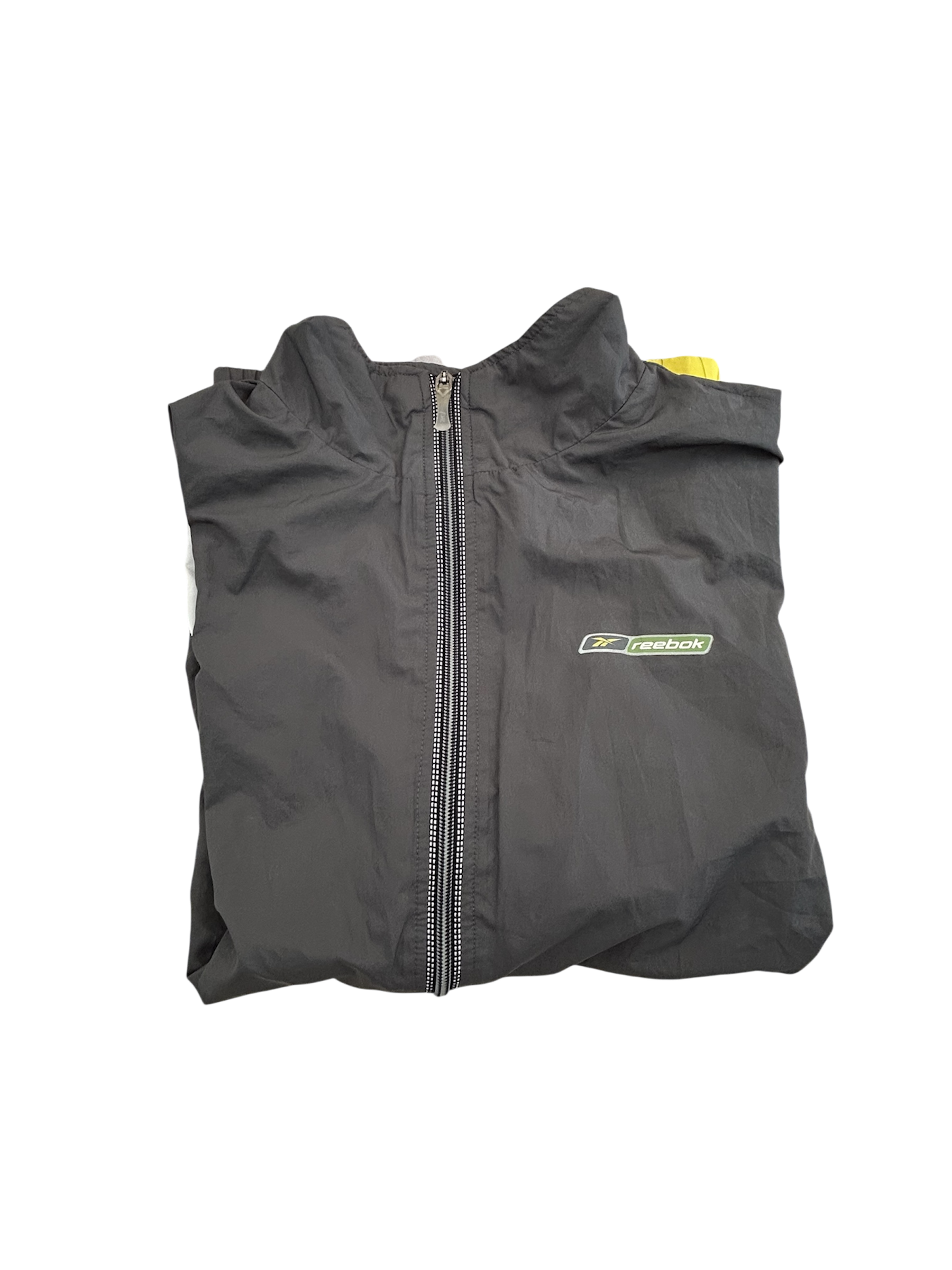 Reebok Vintage Windbreaker – Schwarz, Gelb & Weiß, 2000s Style (XL)