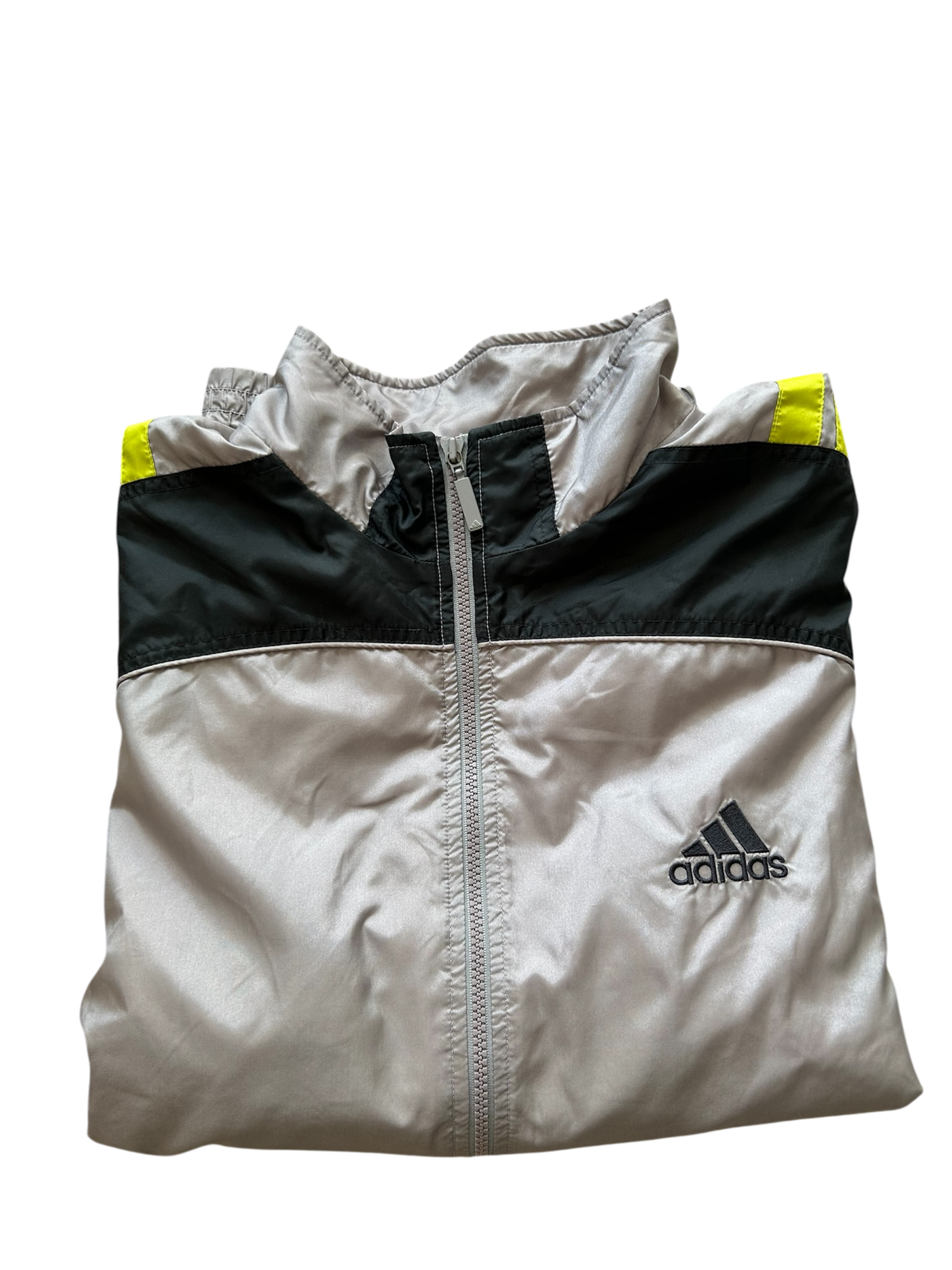 Adidas Vintage Windbreaker – Grau/Schwarz mit gelben Streifen (XL)
